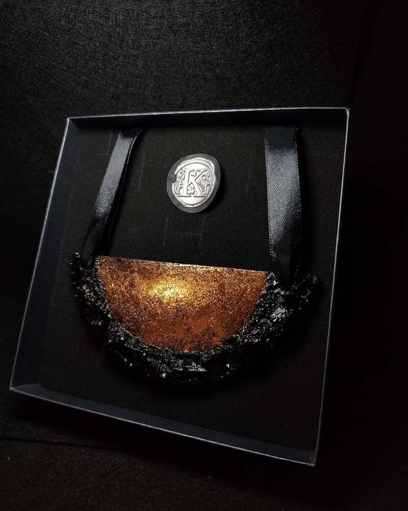 In a mystical kingdom beyond nine mountains and waters, a vibrant forest flourished with wild animals and plants untouched by humankind. The sun nourished the vegetation, while majestic creatures roamed freely. In this rich environment, new trees constantly sprouted, while those that had stood for millions of years slowly transformed into coal. Coal, a precious source of energy, has historically been used for heating and light. Artist Marjeta Hribar now offers a unique perspective, suggesting: “Instead of burning it, adorn yourself with it.” This material evolves over time, preserving our history, roots, and essence while simultaneously embracing innovation.