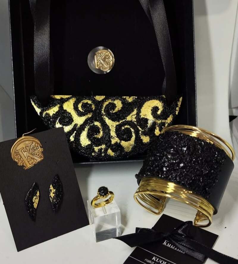 KUOLMI – UNIQUE JEWELRY MADE FROM COAL represents a fusion of tradition and modernity and symbolizes Slovenian heritage. Marjeta Hribar, renowned for her coal-based creations from the Zasavje region, has received notable recognition: her Kuolmi pieces were included in gift bags for nominees at the prestigious Grammy Awards. Her jewelry collections, designed for the Grammys and the Oscars, have captured the attention of music and film stars alike. The invitation stems from her distinctive style, environmentally conscious approach, and innovative use of coal in fashion—an achievement also acknowledged by a respected New York art magazine.
